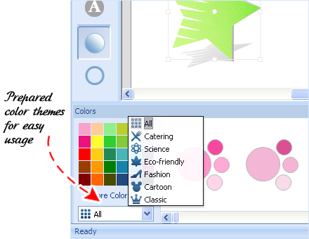 Easily apply various effects, such as a shadow, bevel, or gradient, with just a single click. Create text logos quickly and easily by inserting shapes into text. Improve the look of your logo.